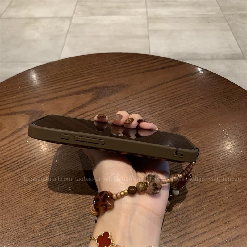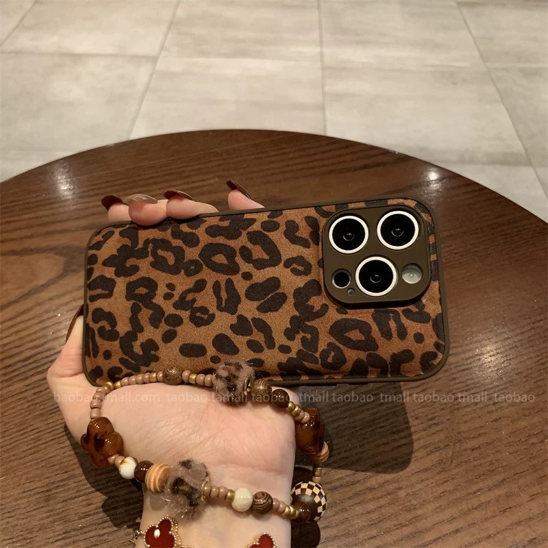 Drum foreskin pattern dark brown leopard print fur ball chain suitable for Apple 16promax phone case iPhone 13/14 retro 15pro niche 17promax simple 15promax all inclusive 11 women