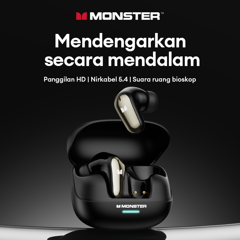 Monster MQT52 TWS Earphone Bluetooth 5.4 Gaming AI Intelligent Noise Reduction 0.08s Low Delay Headset