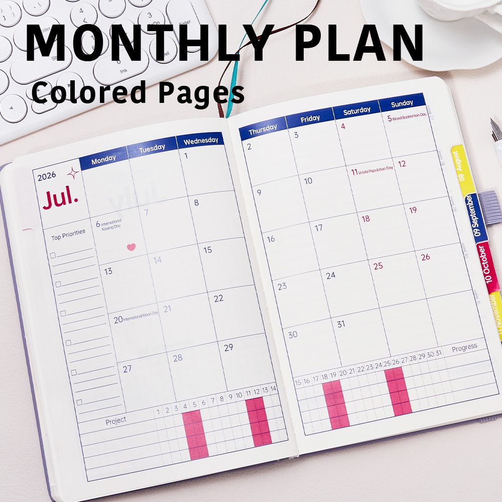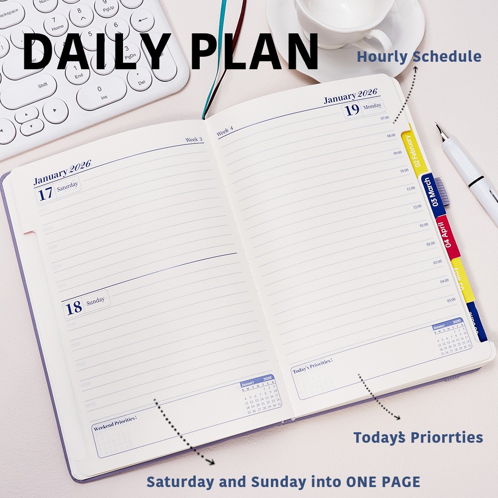 2026 Perencana Tahunan A5 365 Hari Agenda Bulanan/Mingguan Jadwal 206 Lembar Kertas 80GSM Bebas Asam Buku Catatan Sampul