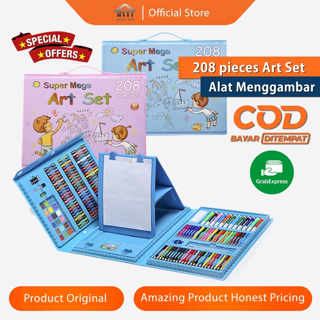 LS Alat Lukis Set Crayon Anak Pengasah 208pcs Set Alat Menggambar Melukis Anak Crayon Cat Air Pensil