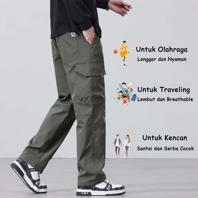 SUYX Celana Cargo Panjang Pria Loose Pants Gombrang Outdoor Celana Cargo Korean Style Celana Pria