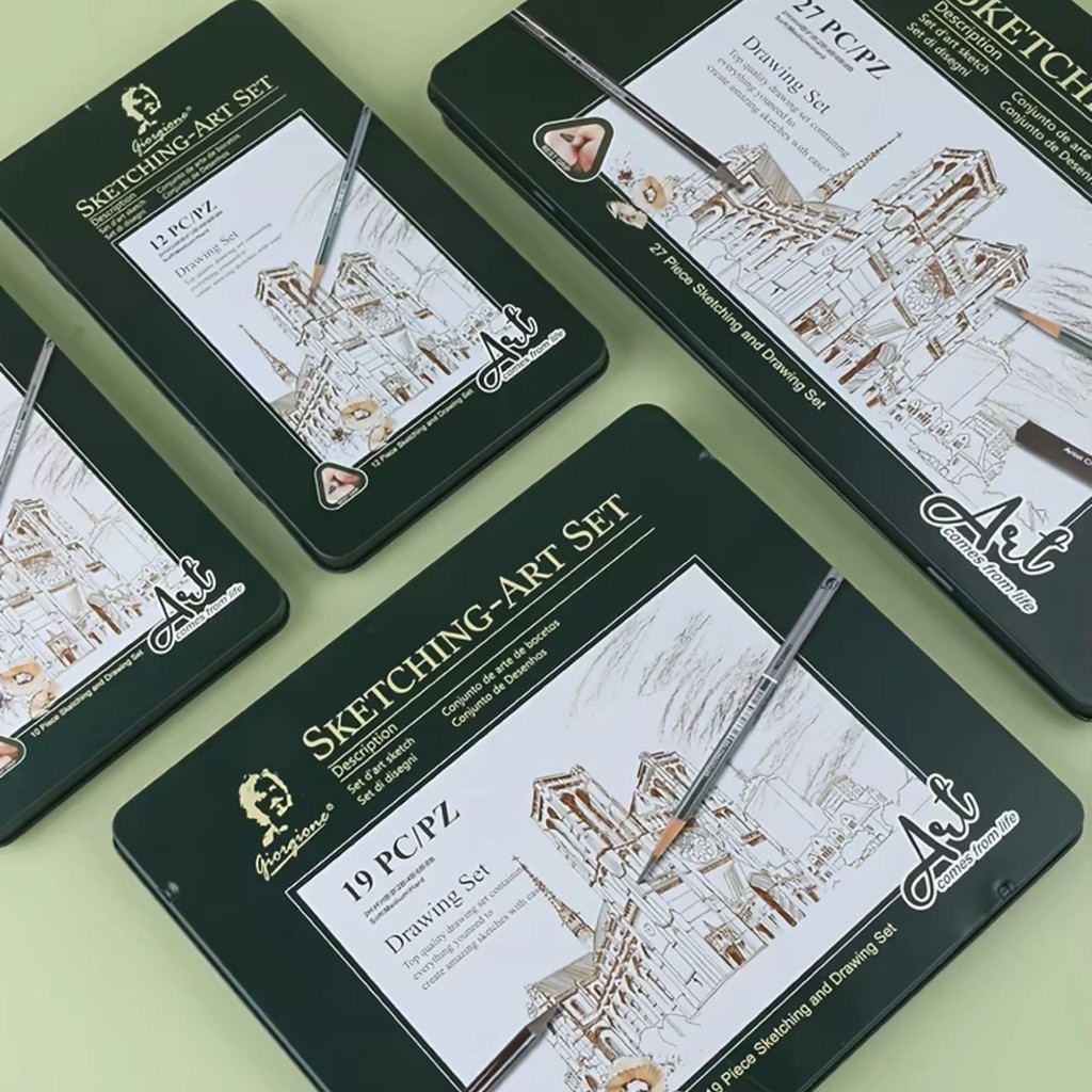 27pcs Giorgione Set Drawing Pencil Pensil Sketsa Sketch Tin Box Profesional Arang Penghapus BR081