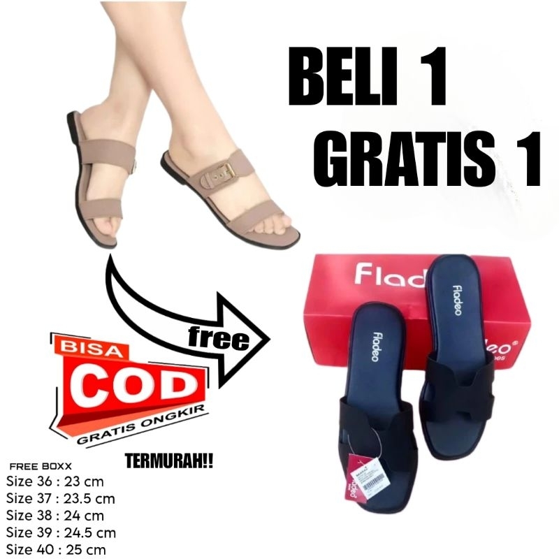 BELI 1 GRATIS 1 SANDAL FLADEO WANITA | SANDAL SLOP BAN DUA NEVADA WANITA TEPLEK