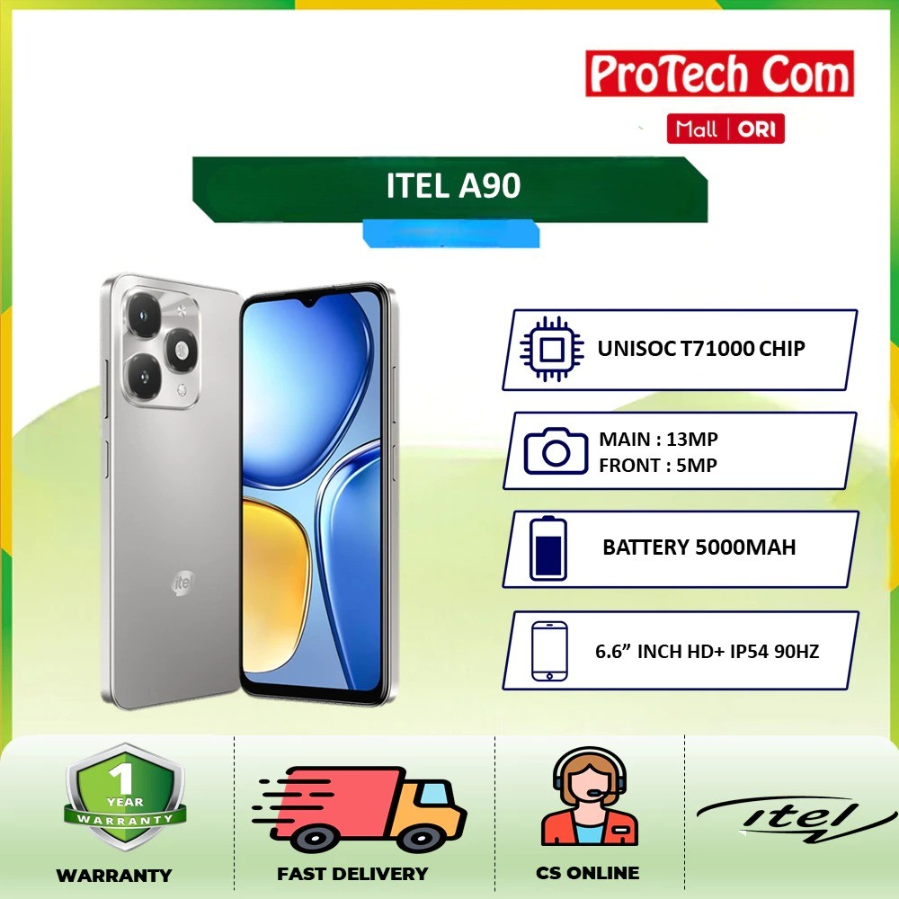 ITEL A90 4GB/64GB 5000mAh IP54 DUST & WATER RESISTANCE 6.6" INCH IPS LCD 90Hz GARANSI RESMI
