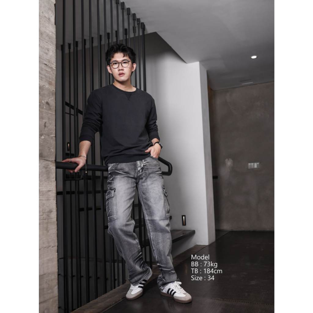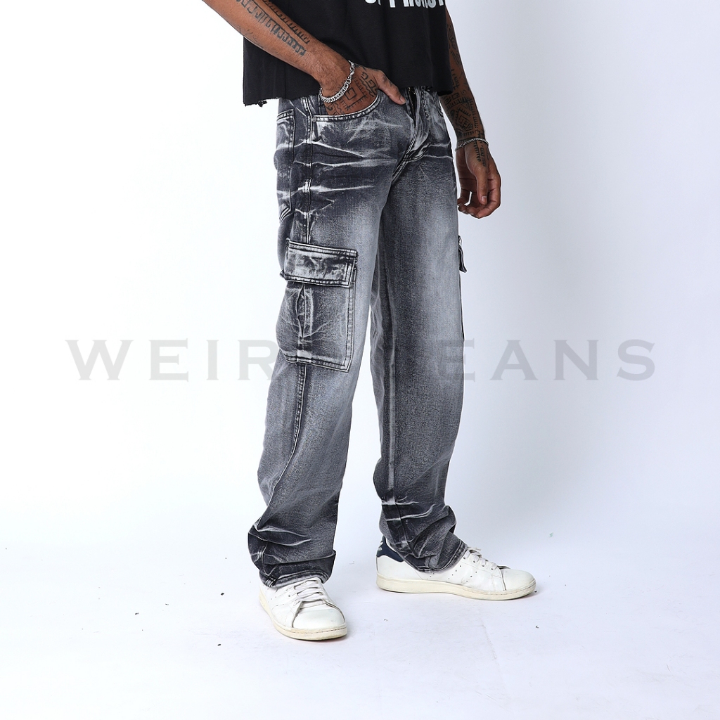 Weird Jeans - Loose Fit Oscar Grey Cargo - Celana Jeans Panjang Cargo Pria Loose Fit Polos Nyaman