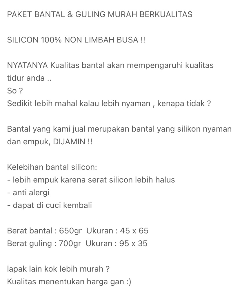 PAKET BANTAL & GULING SILIKON ASLI