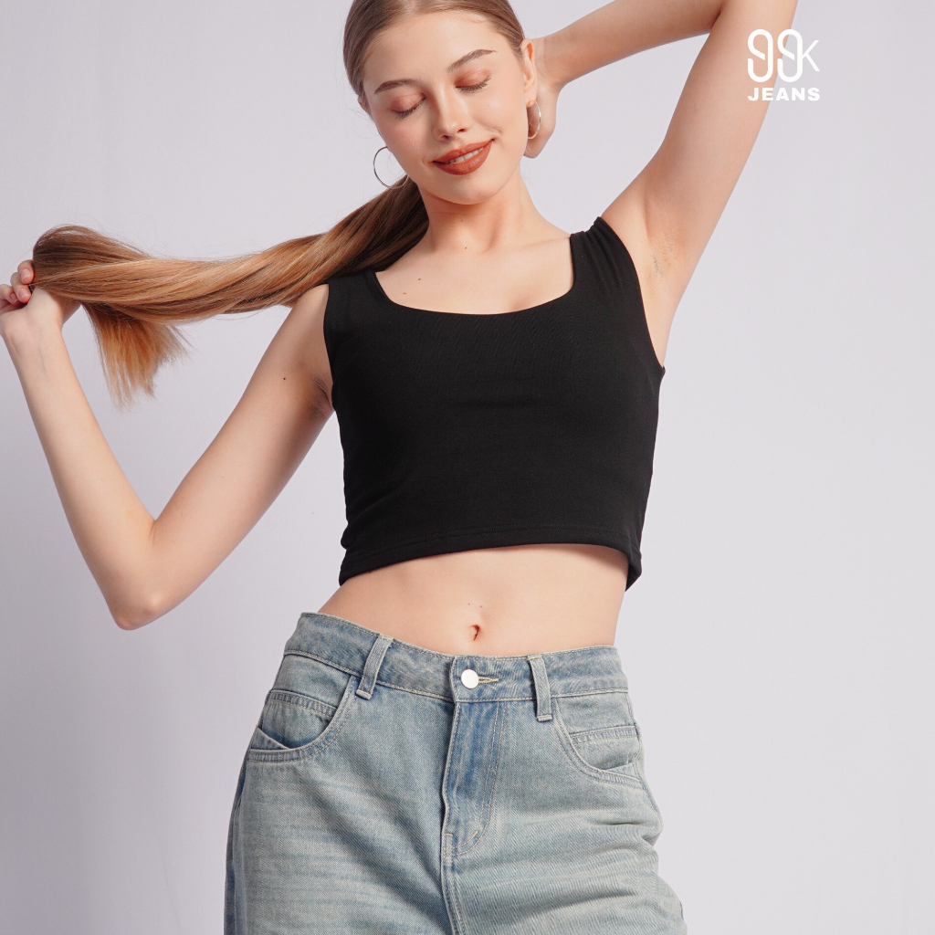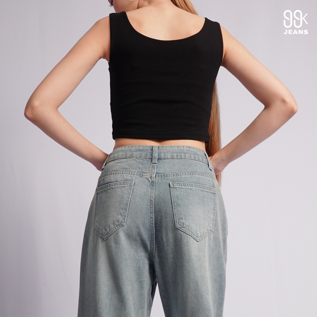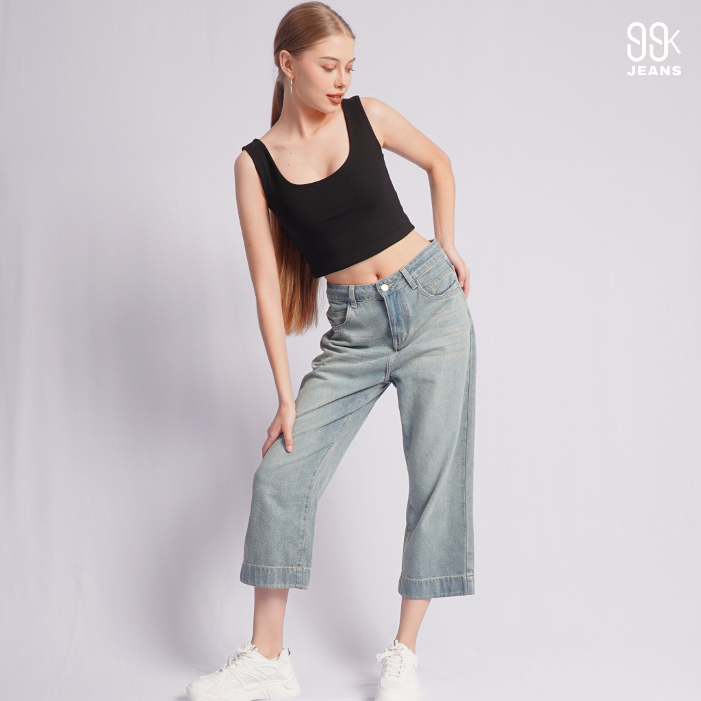 [Denmo] Women Pants Denim Cropped Straight Leg Mid Waist Jeans (Size: 26-30)