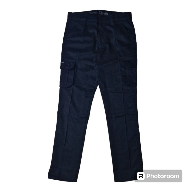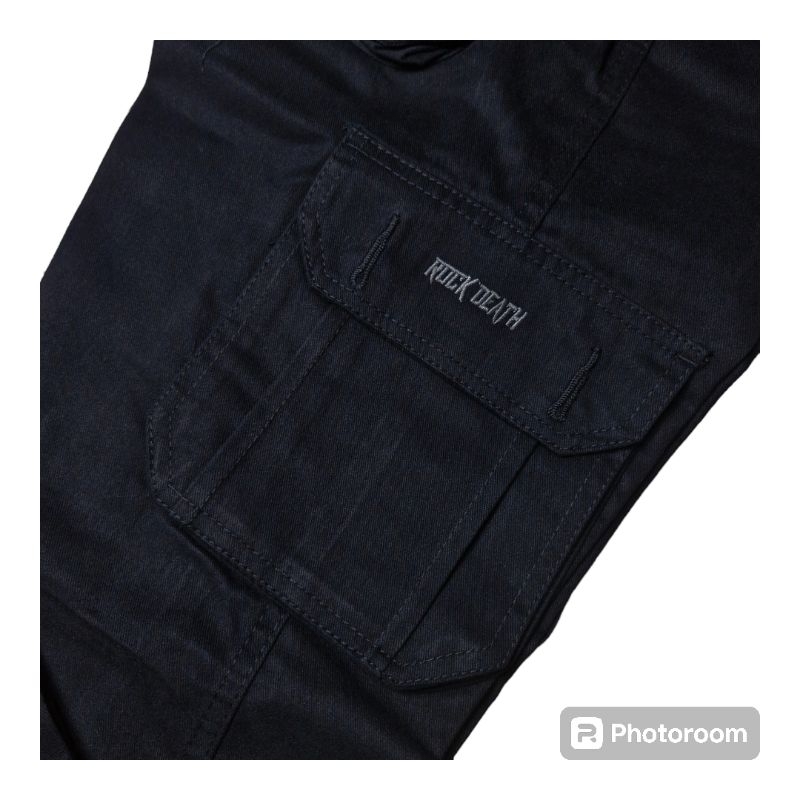 Celana Cargo Distro Rockdeath Panjang Hitam Twill Non Streach Tebal Size S M L Xl