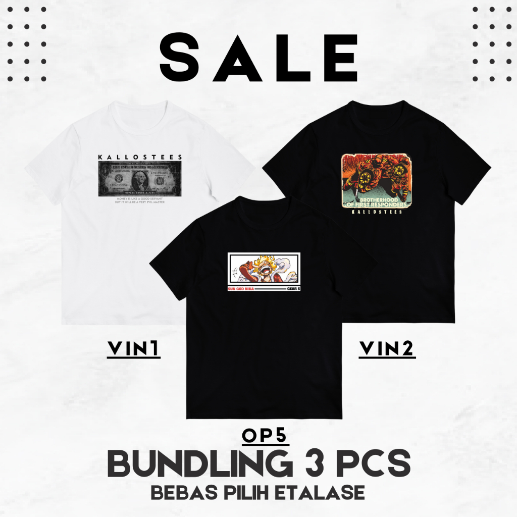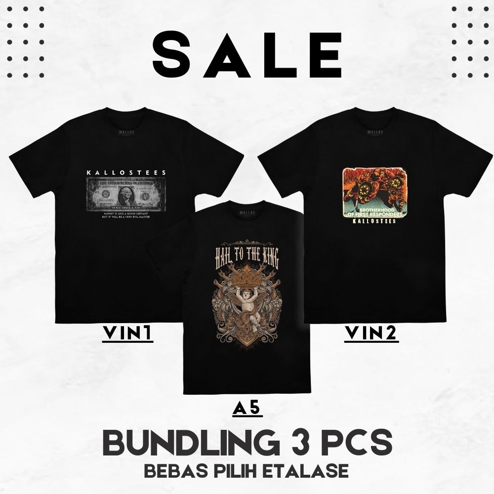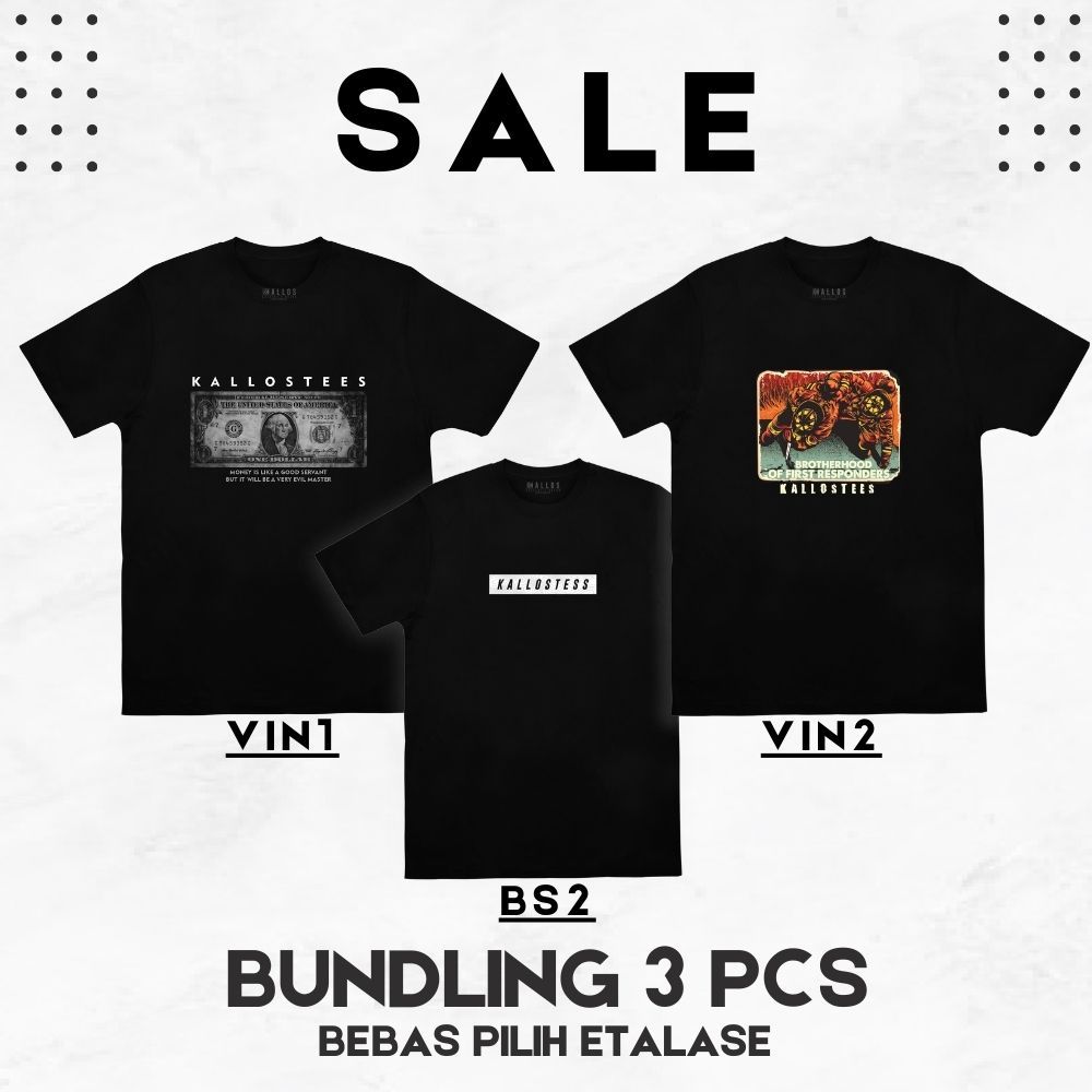 PAKET 3 Kaos Distro Hitam Cowok Unisex FREE STICKER – T-Shirt Combed 24s Lengan Pendek by KALLOSTEES