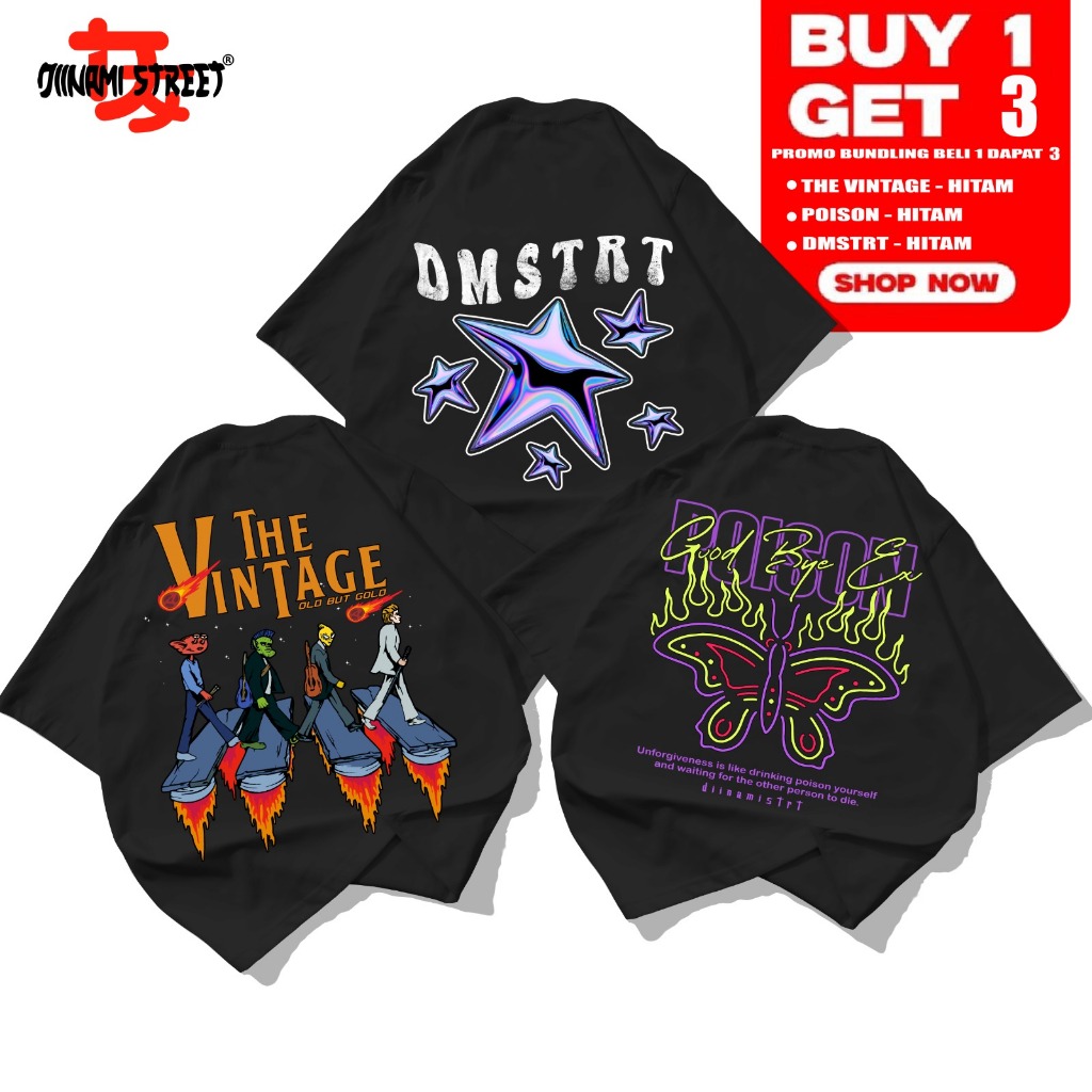 Buy 1 Get 3 Kaos Distro Tshirt BUNDLING THE VINTAGE | DMSTRT | GOOD BYE EX Unisex Pria Wanita Cotton Combed 24s