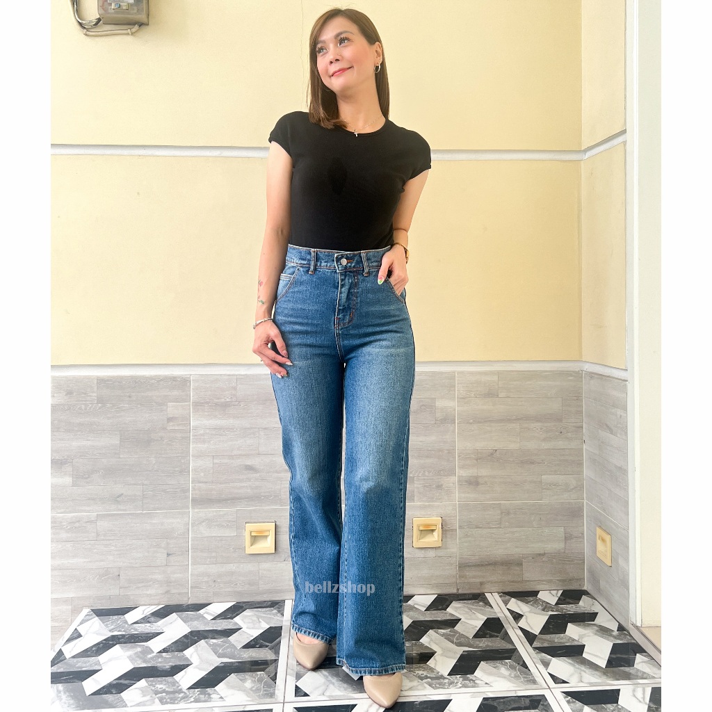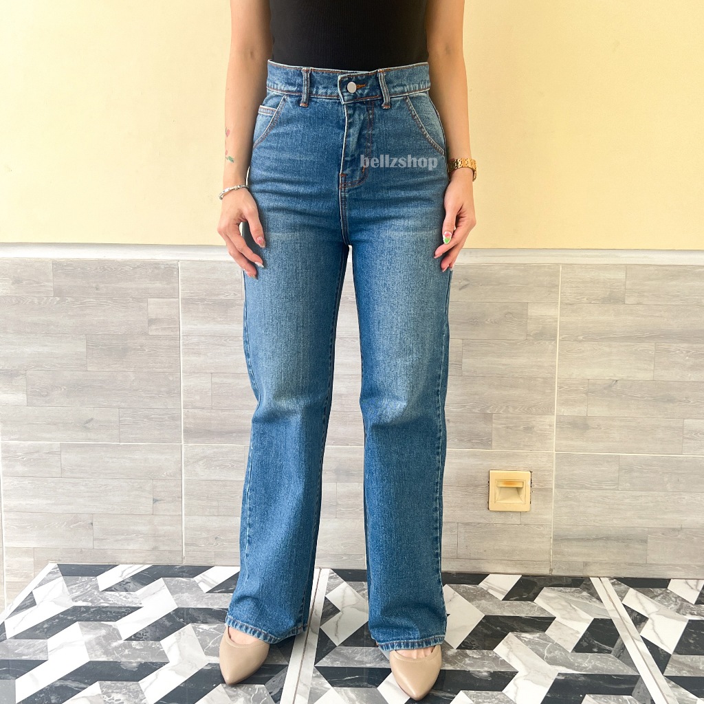 Bellzshop - Celana Kulot Highwaist Jeans Panjang Wanita Tebal Premium Sachi Bio Stone