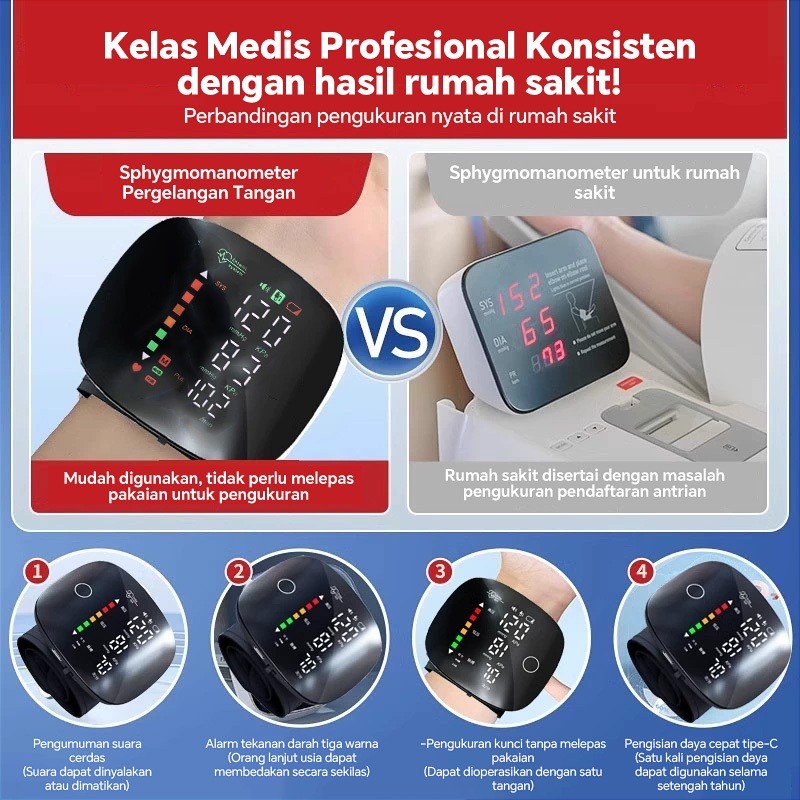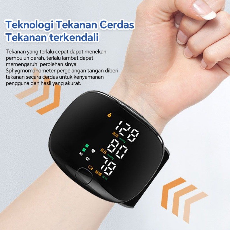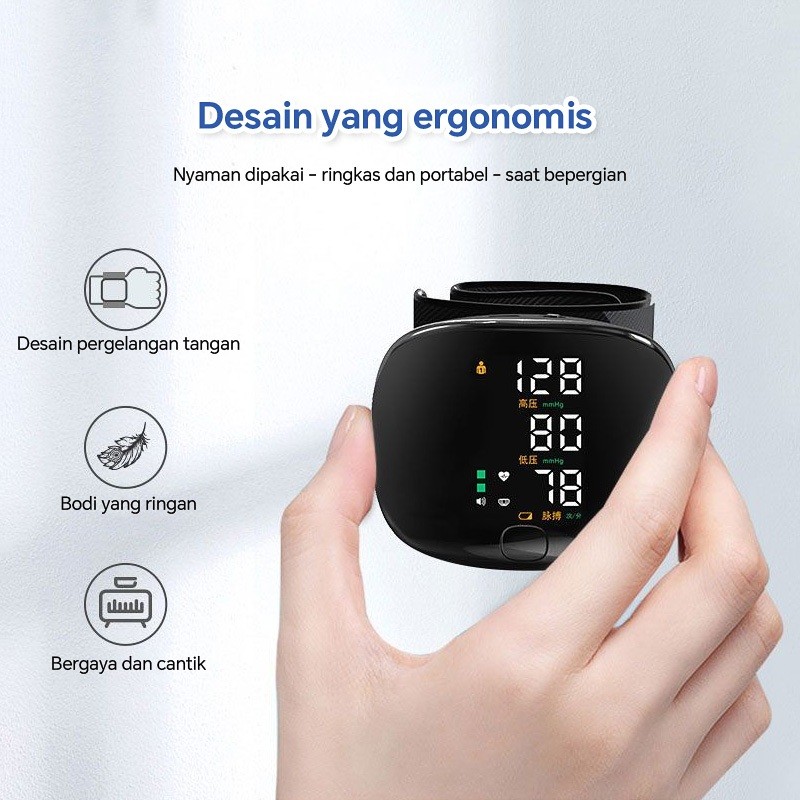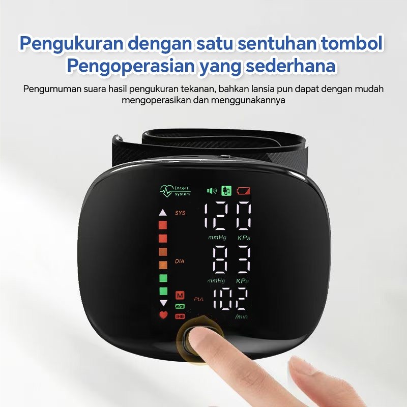 Tensimeter Elektronik Pergelangan Tangan Akurat Tinggi Alat Pengukur Tekanan Darah Otomatis dengan Suara untuk Keseh