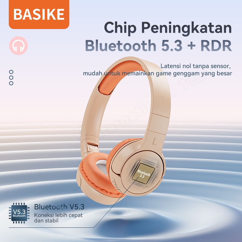 BASIKE Headphone Wireless Bluetooth Headset Gaming 9D HIFI Music Stereo Bass Makaron Original