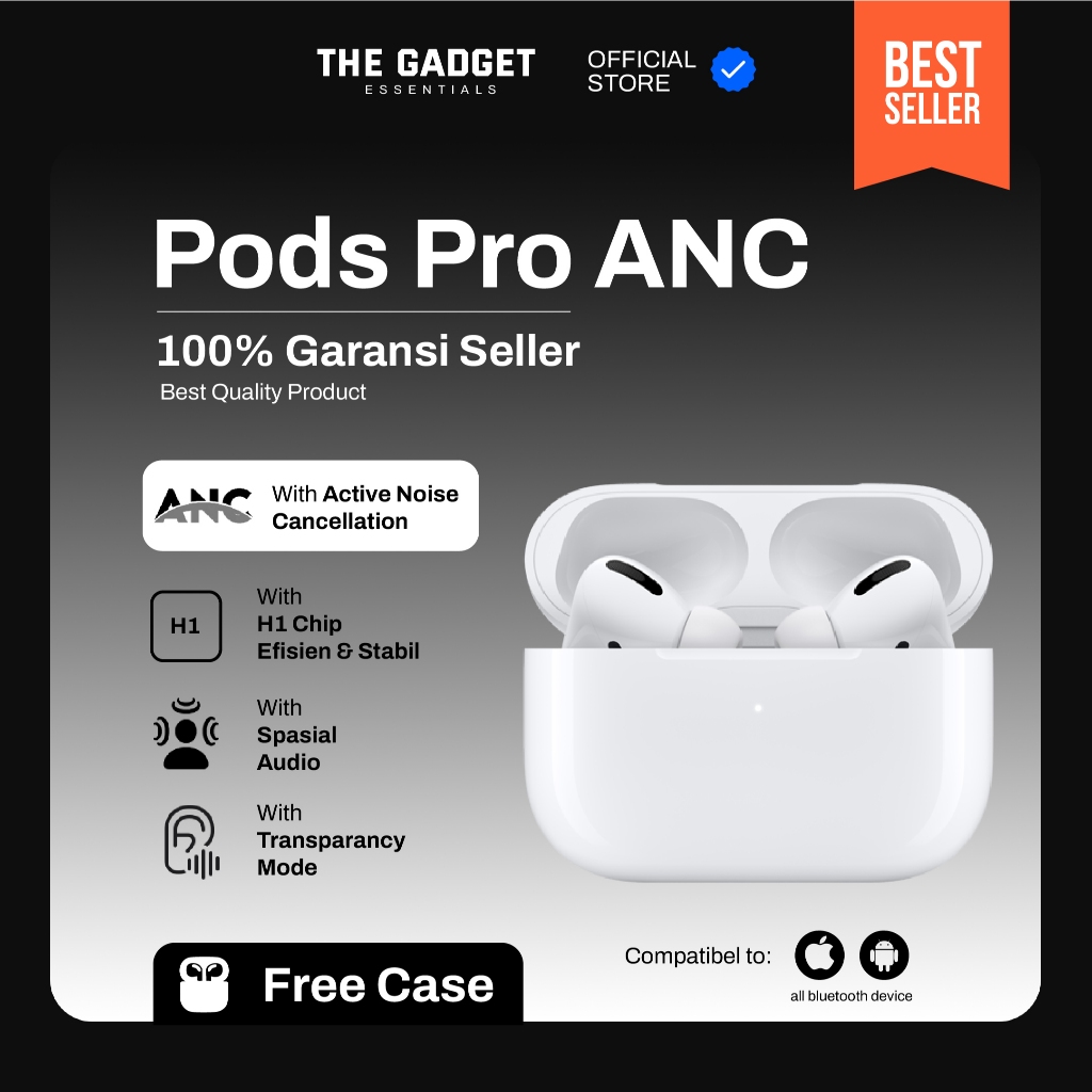 [BEST SELLER] ThePods Pro ANC 100 PERSEN – TWS Active Noise Cancelation, H1 Chip, Wireless Charging, Free Case, Spasial Audio By The Gadget Essentials