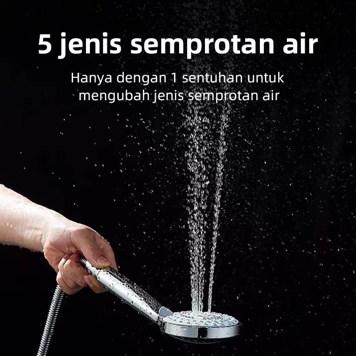 Shower Mandi 4 In1 Shower Kamar Mandi Satu Set 5 Mode Shower Head Simple Kepala Pancuran