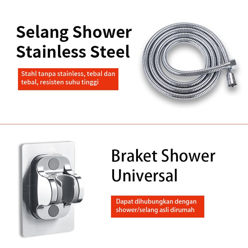 UPHOME Hand Shower Kamar Mandi Paket 12cm 240 Lubang Panel Shower Tekanan Tinggi Supercharged 4 Mode Shower Set Fungsi H