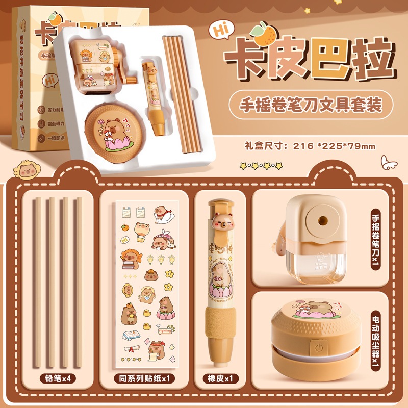 8 in 1 Paket Set Alat Tulis Pengasah Pensil Manual+Penyedot Debu Listrik/ Set Alat Tulis Elektrik Set Perlengkapan Alat