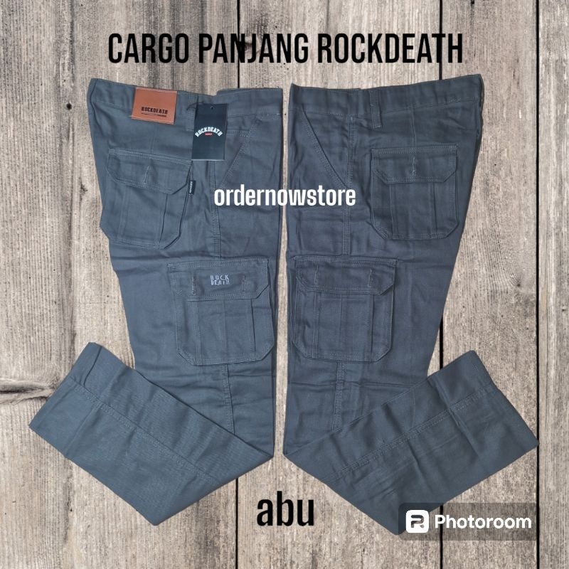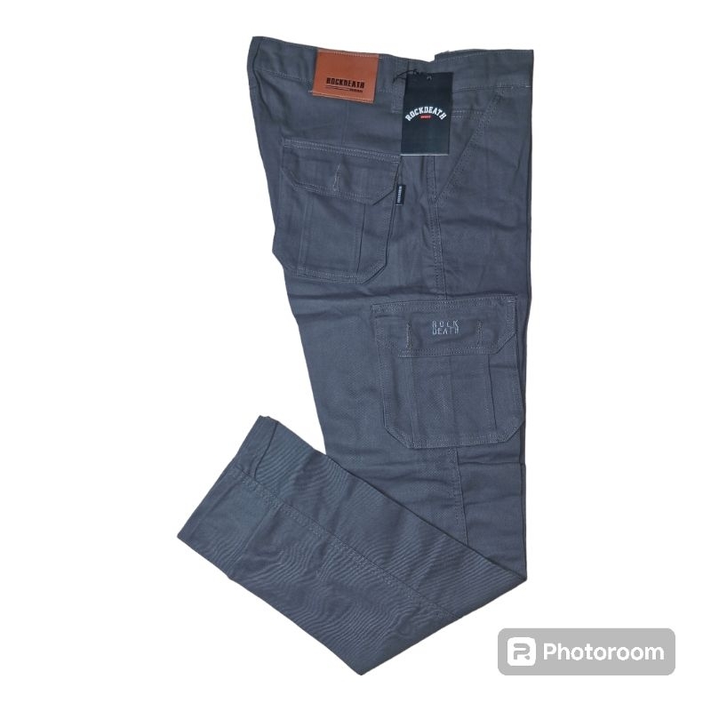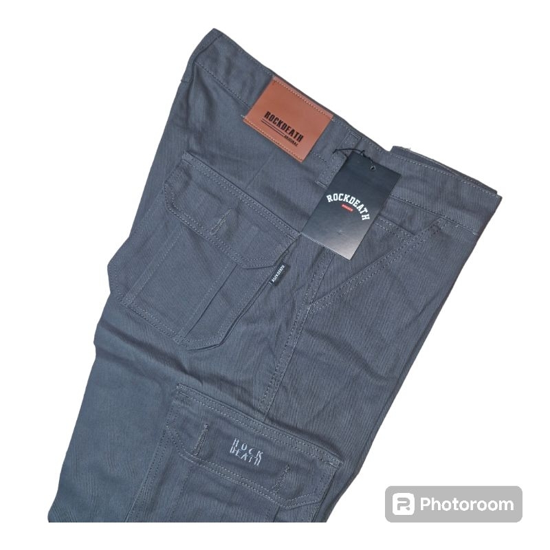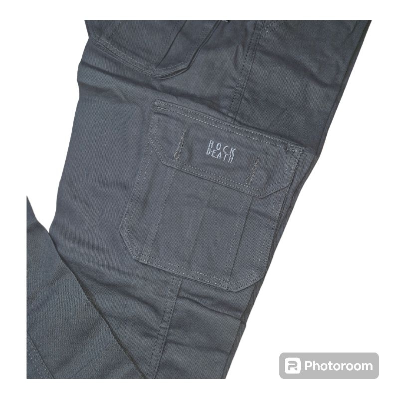 Celana Cargo Distro Rockdeath Panjang Abu Twill Non Streach Tebal Size S M L Xl