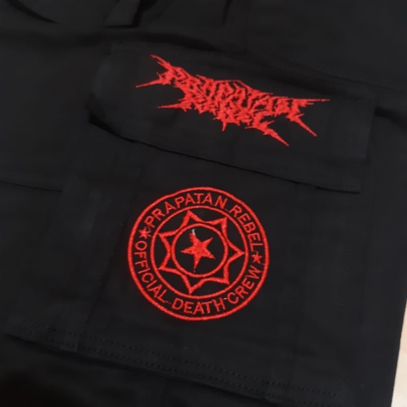 Celana Cargo Prapatan Rebel Panjang Hitam Size S M L Xl Bordir Bintang Merah