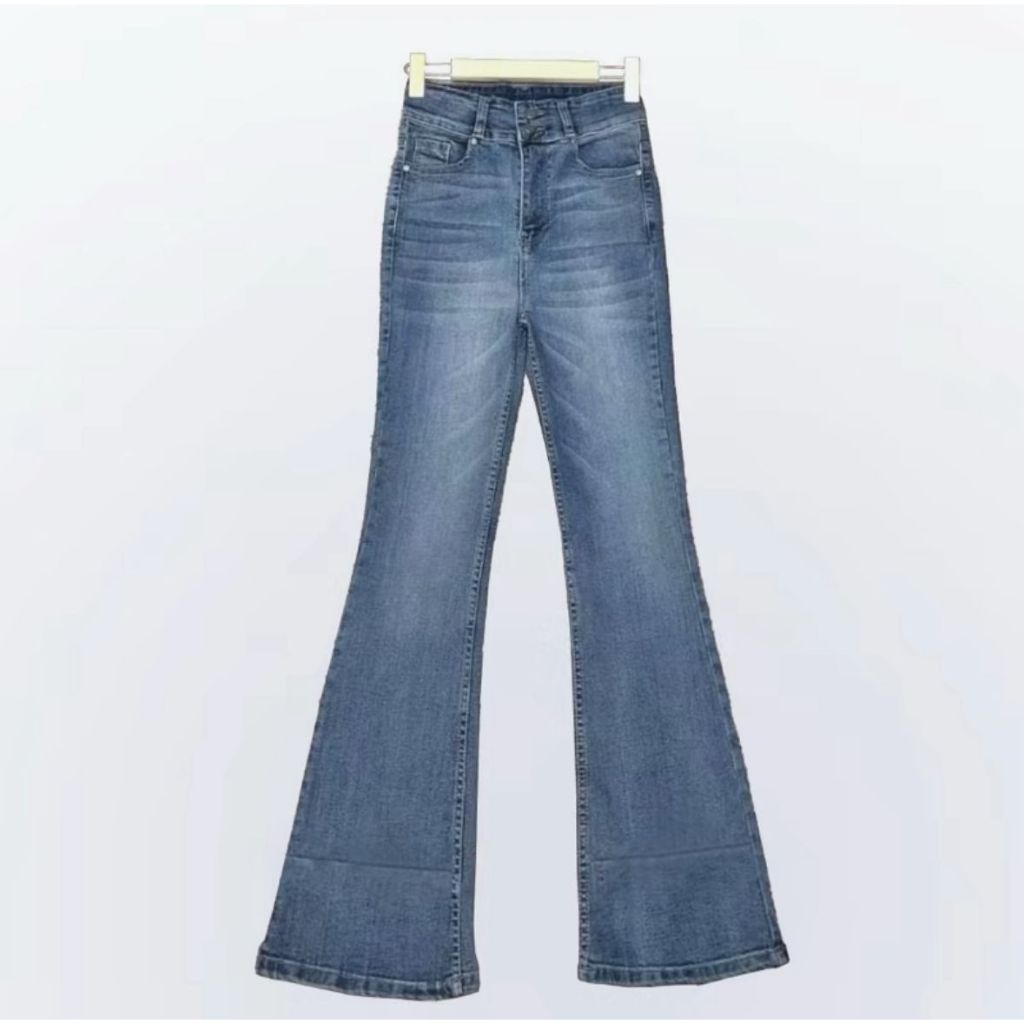 Jennie-HighWaist Cutbray Jeans Celana Flare Panjang Stretch Wanita Retro Vintage Lipat Bawah