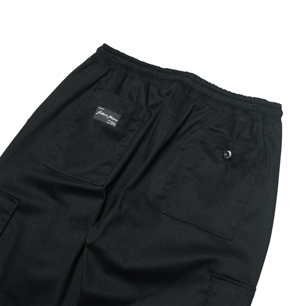 Fatto A Mano Celana Cargo Loose Fit Long Pants Pria Baggy Cotton Twill Tebal Hitam Black