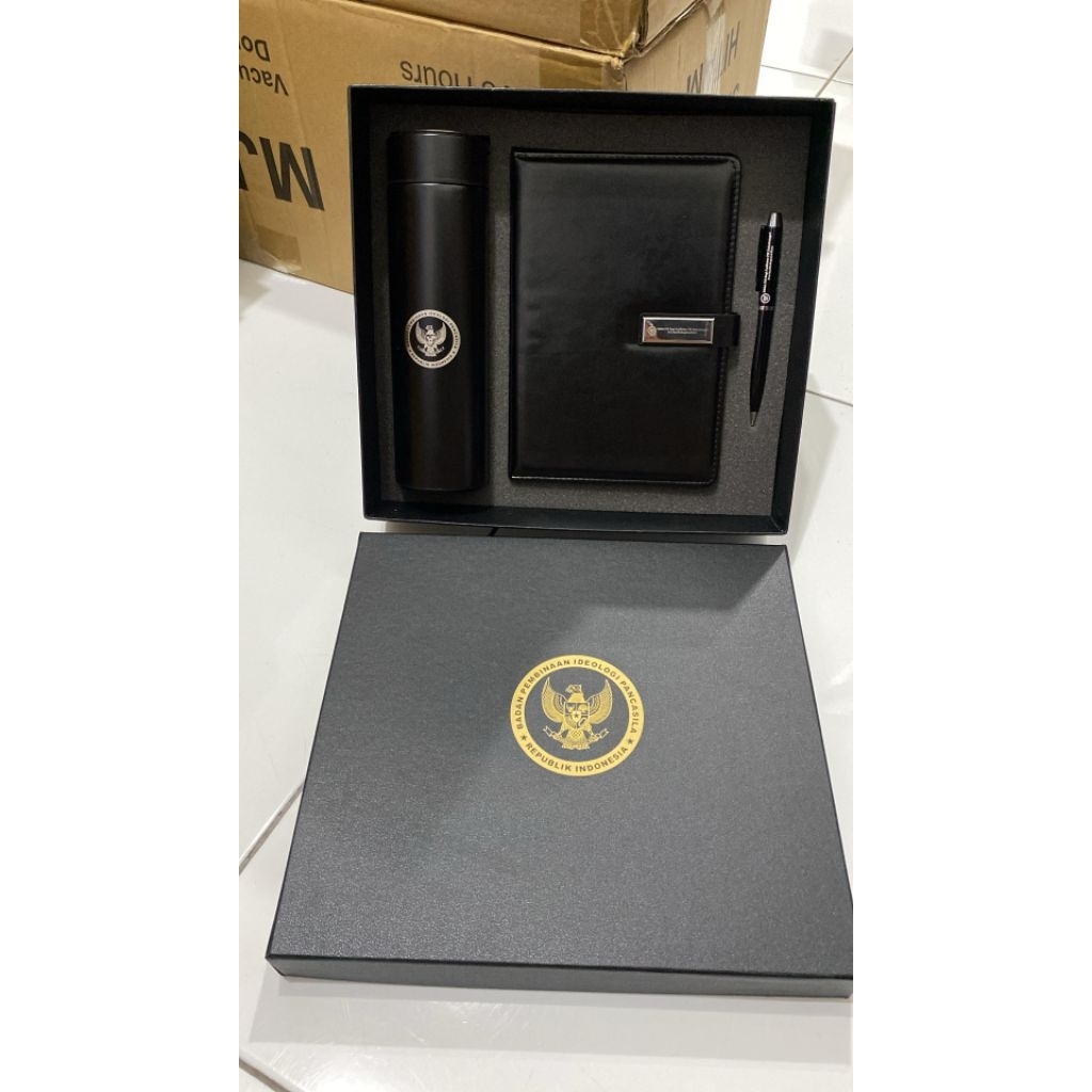 Paket Hampers / Gift Set 3in1 Tumbler-AgendaA5-Pulpen /Free Custom Logo Tulisan