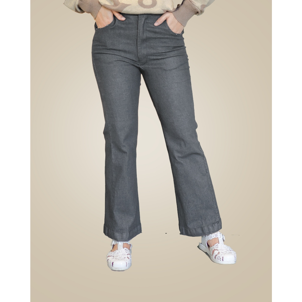 (READY STOCK) Raia Pants - Denim Flare Highwaist Soft Jeans Stretch