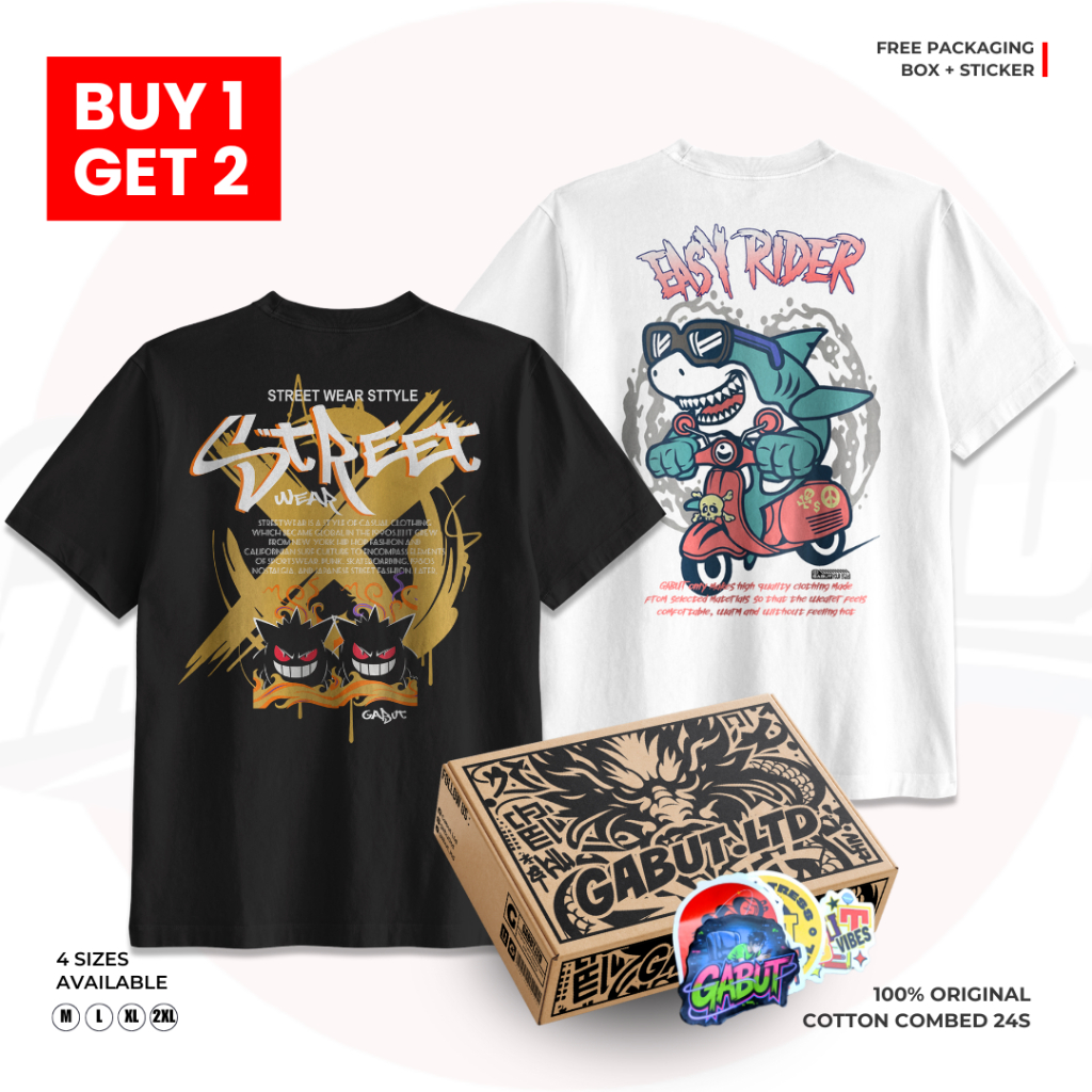 [GABUT] - Paket Bundling 2pcs Baju Kaos Distro Unisex Pria Wanita Motif Street Devil dan Easy Rider Cotton Combed 24s Kaos Oblong Pria Wanita 100 persen Produk Original