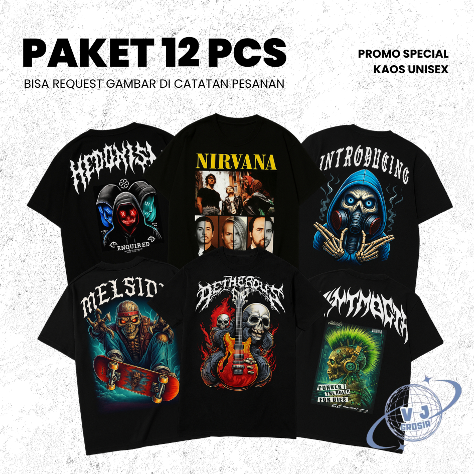 Paket 12 Pics Kaos Distro Semi Katun 24S Lembut dan tahan lama