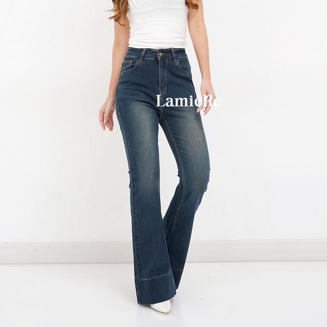 LamieRe - Highwaist Flare Jeans 102 Cutbray Jeans bootcut Denim Panjang Wanita Bahan Stretch
