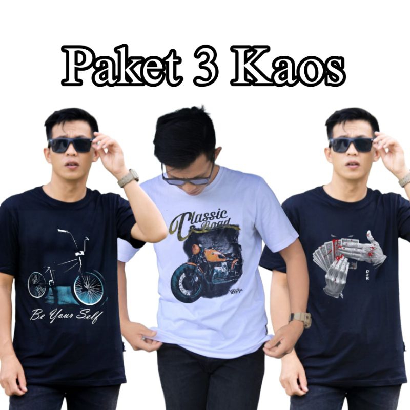Paket 3 Kaos Distro Pria dewasa original D2R 3D motif best seller sepeda motor tangan Baju produk bandung