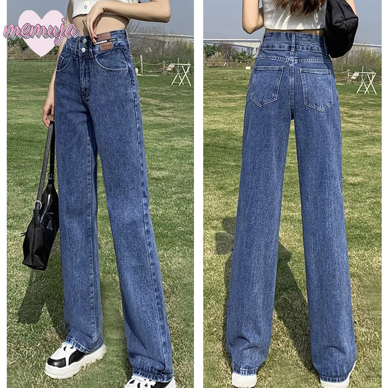 Celana jeans wanita high waist jeans celana kulot wanita celana panjang wanita murah celana panjang wanita santai Kain cuci biru vintage berkualitas tinggi tidak mudah pudar