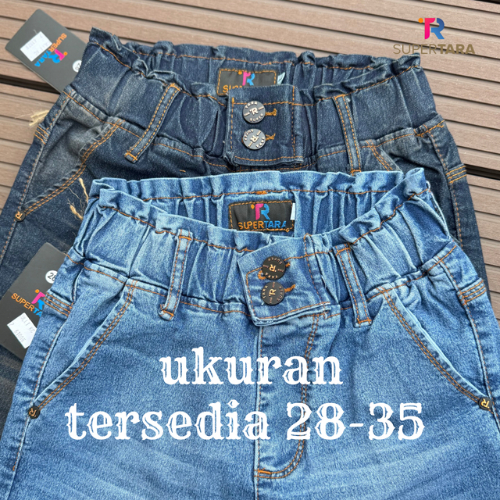 Supertara celana jeans wanita kulot jumbo pinggang karet