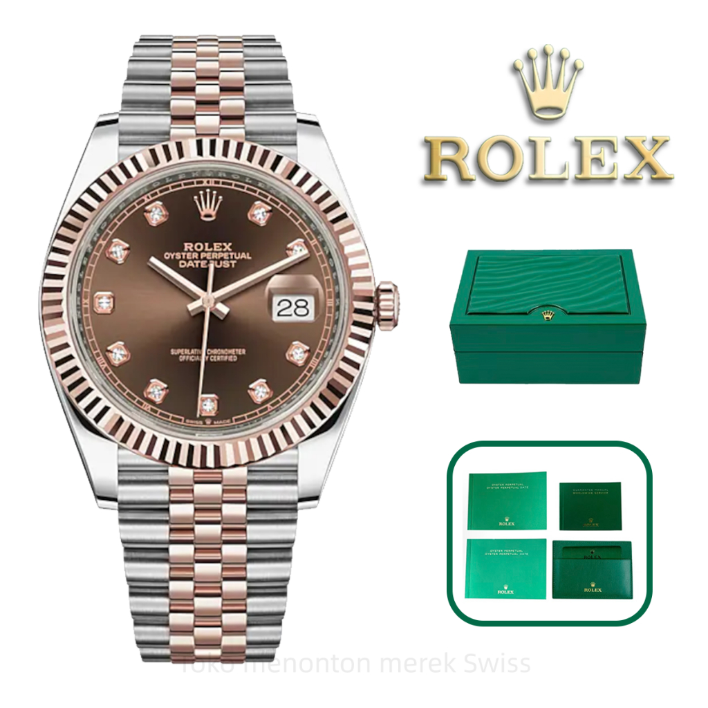 [100 persen Asli] Original Jam tangan Rolex Day Date M126331-0004 Automatic 18K goId Bahan Teflon 36mm Stainless Steel (Oystersteel) SUPER GRADE AAA Jam Tangan Rolex Pria