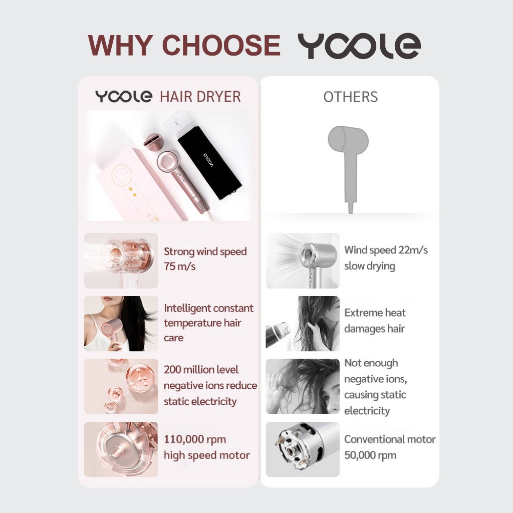 High Speed Hair Dryer S/teknologi ion negatif/Kontrol suhu cerdas/Cepat kering