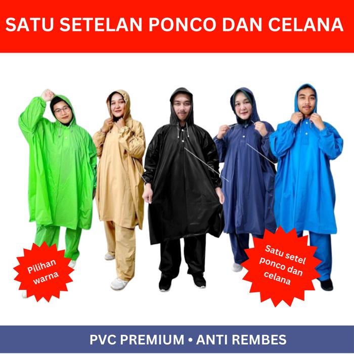 SATU STEL Jas Hujan dewasa pria Ponco Celana Mantel Pria Wanita PVC Setelan Baju dan Celana Dewasa