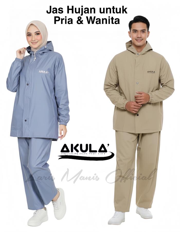 AKULA Jas Hujan Premium Setelan Bahan PVC 0,25 Anti Rembes untuk Pria & Wanita Warna Biru Navy Hijau