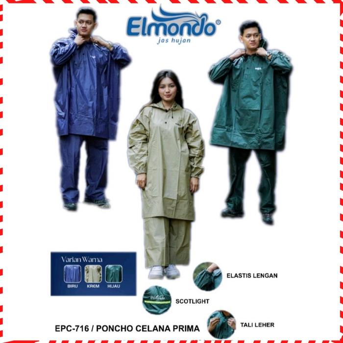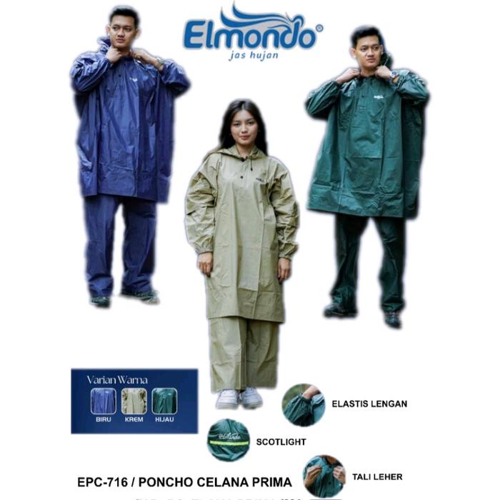 Elmondo Jas Hujan Poncho Prima Setelan EPC-716 Celana & Ponco Dewasa Resleting Kancing Extra Lebar