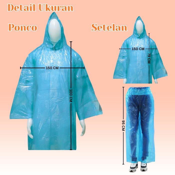 PV88 1 IKAT Jas Hujan Plastik Baju Celana Lengan Panjang Ponco 12 PCS MURAH