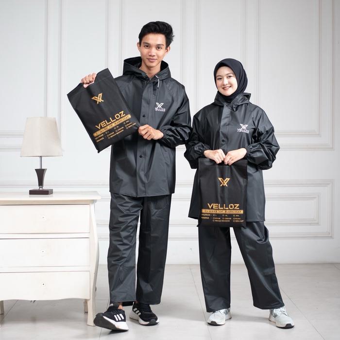 Jas Hujan, Raincoat Mantel By VELLOZ Pria Wanita Bahan PVC Tebal Elastis Anti Rembes