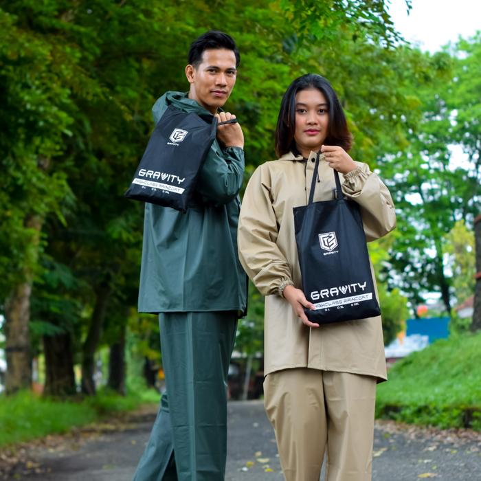 GRAVITY Jas Hujan Dewasa Setelan Pria Wanita Mantel Tebal Anti Rembes Bahan PVC 0.25 untuk