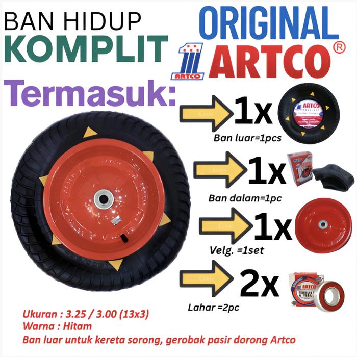 BHK Ban Komplit ARTCO Asli Ban Luar + Dalam + Velg + Lahar Ban Hidup Komplit Ban Gerobak Angkong