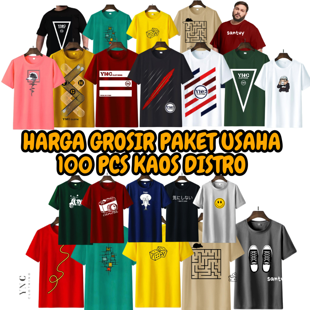 PAKET GROSIR USAHA 100 KAOS PRIA WANITA DISTRO UNISEX MOTIF DISTRO
