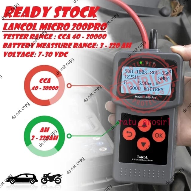 Tester Aki Mobil dan Motor Alat Test Digital Lancol Micro 200 Pro