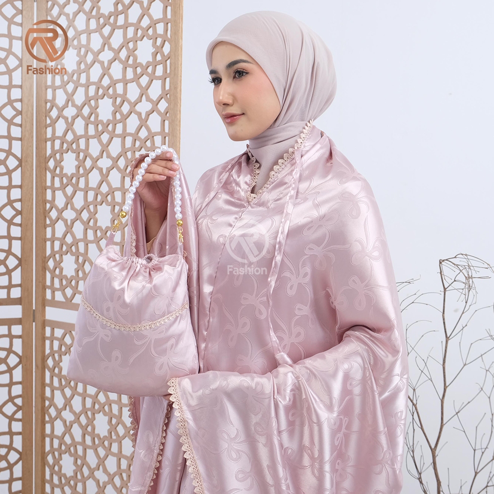 [Star] RA Fashion Mukena Dewasa Coquette Ribbon Pita 2in1 Sutra Silk Armania Jacquard Jumbo Renda ELEGAN MEWAH!!