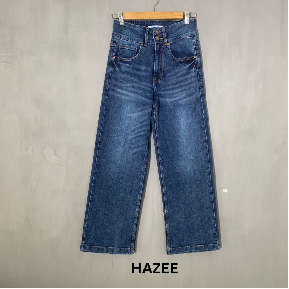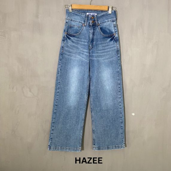 HAZEE - NAURA | celana jeans wanita kulot highwaist kancing 2 bahan melar premium denim