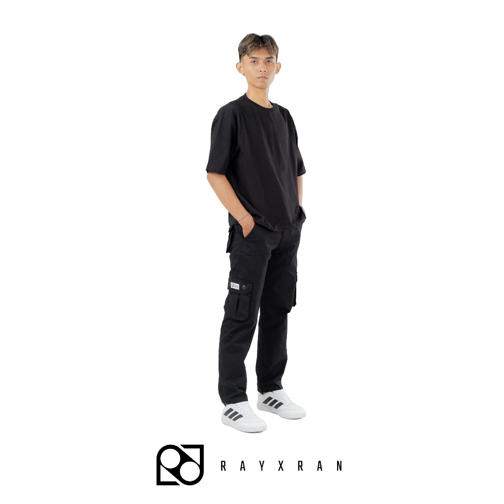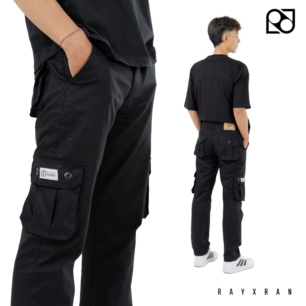 RAYXRAN Celana Cargo Panjang Pria Basic Hitam Slimfit