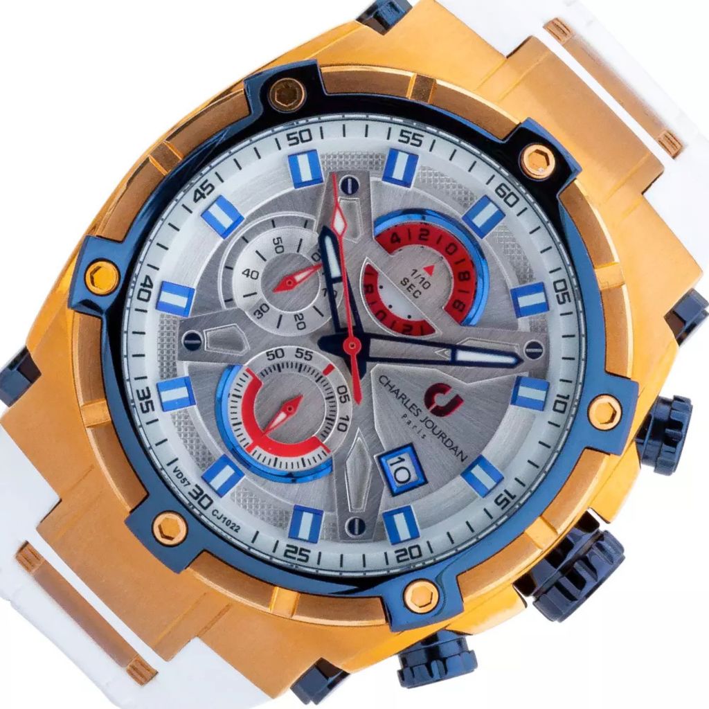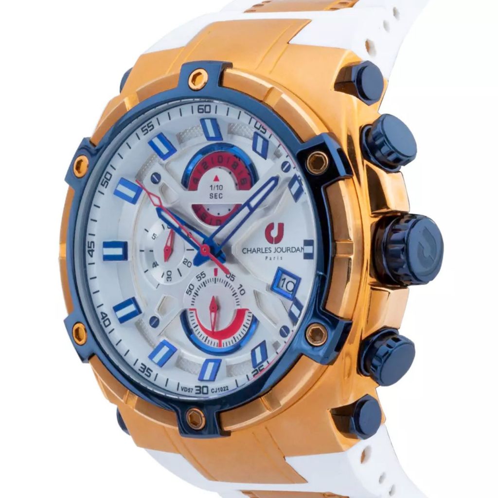 Jam Tangan Pria Charles Jourdan White Dial Men Silikon Strap Analog CJ1022-1512C Original