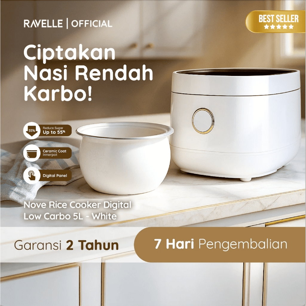 Ravelle NOVE Rice Cooker Digital Low Carbo Less Sugar 1.8 Liter Nasi (5Liter) - Penanak Nasi - Low Watt