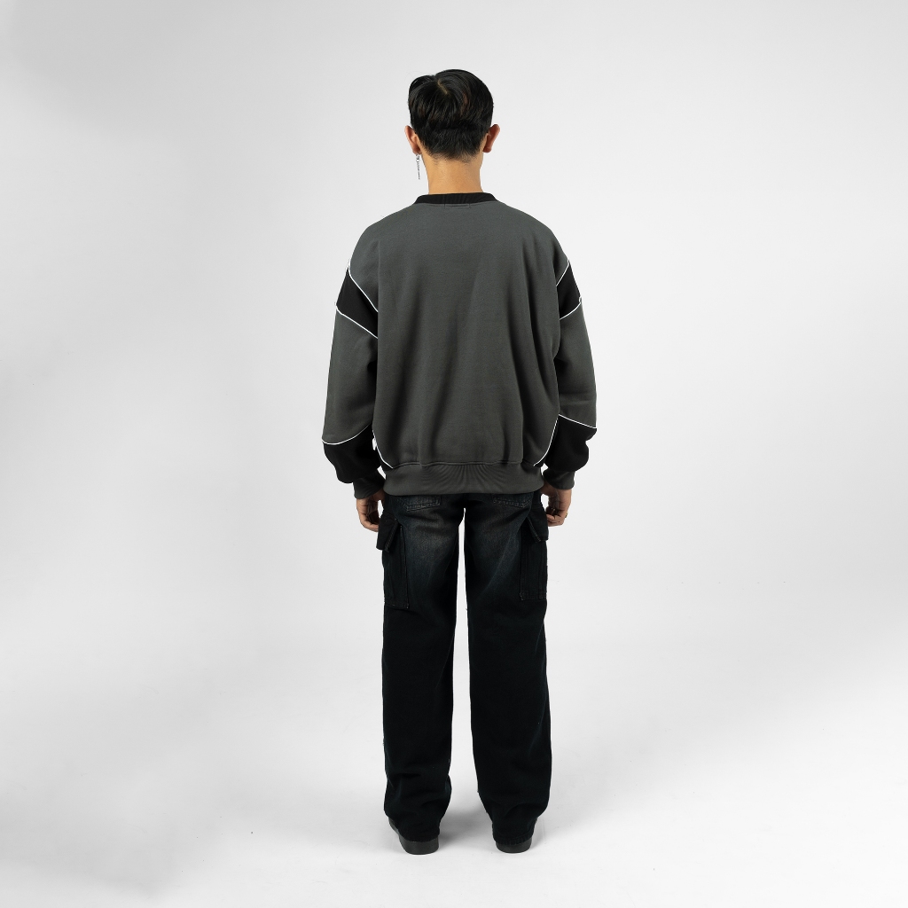 HLPD WeirdWorld Jaket Crewneck Boxy Kombinasi Pria Wanita Sweater Clea - Polos Grey